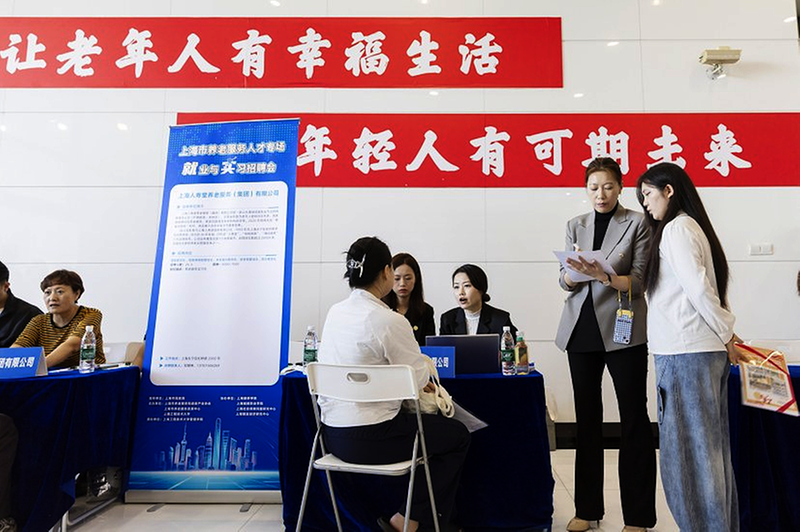 当日,上海市养老服务人才专场就业与实习招聘会在上海工程技术大学松江校区举行,近50家养老服务机构及企业提供覆盖机构管理、专业社工、行政后勤、专技人员、医护人员等多个领域的百余个岗位。 新华社记者 王翔 摄