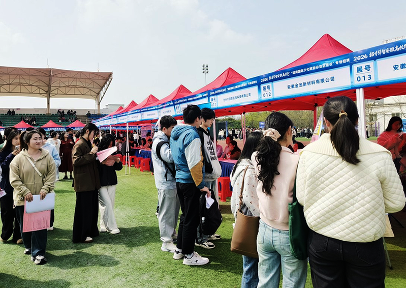 日前,区人力资源和社会保障局组织20余家企业在池州学院举办招聘会,以优质岗位和留池惠才政策,助力高学历人才留在贵池就业创业。图为招聘会现场。 通讯员 叶利岚 摄
