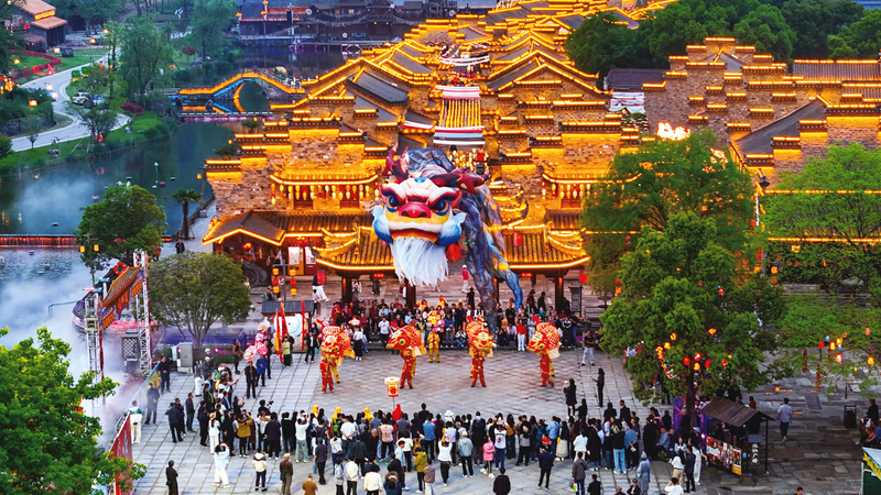 近年来,景区持续打造“非遗+夜游+沉浸式体验”新模式,全天候上演30余场演艺活动,大型实景剧《傩王传奇》、绝技表演“上刀山”、傩仙巡游等节目轮番登场,让游客沉浸式感受非遗独特魅力。 记者 吴骏 摄