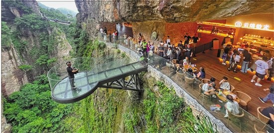 名山公园(乐清)分会场雁荡山景区,悬崖咖啡馆成为网红景点。